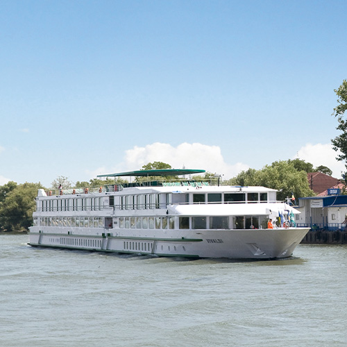 Le MS Vivaldi navigue sur le Danube. Ce bateau possède 88 cabines réparties sur 3 ponts ainsi qu'un pont soleil avec transat vous permettant de profiter des moments de navigation. À bord, vous pourrez profiter d'un salon avec piste de danse et bar, d'une salle avec télévision ainsi que d'une salle à manger où vous seront servis votre déjeuner, diner et souper. 5 ancres - Inauguré en 2009 - Capacité : 176 passagers