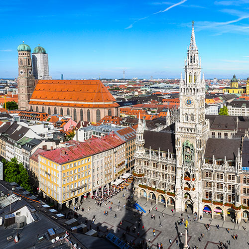 Déjeuner. Route vers Munich. Nous débuterons par la visite guidée de Munich, ville où histoire et modernisme se rencontrent. Nous verrons le vieil et le nouvel hôtel de ville, la Marienplatz, la Frauenkirche, la place de l’Odéon, la Theatinerkirche, ainsi que les grandes avenues royales Ludwigstrasse et Maximilianstrasse. Visite ensuite de l’église Saint-Jean-Népomucène. Considérée comme un chef-d’œuvre du rococo allemand, cette petite église fut construite par les frères Asam, tous deux architectes, pour leur servir de chapelle privée. Dîner. Par la suite, installation à l’hôtel pour deux nuits. Ensuite, visite guidée d’une brasserie bavaroise suivie d’un souper dans un biergarten typique. Nuitée.