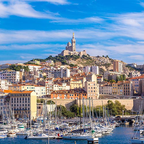 Déjeuner. Nous débuterons la journée par la visite guidée de Marseille. Fondée par des Grecs vers 600 av. J.-C., Marseille est la 2e ville française en importance. Elle possède un riche patrimoine architectural que nous admirerons : l’ancienne cathédrale dite la Vieille Major, le pittoresque quartier du Panier, le vieil hospice de la Vieille Charité et l’imposante cathédrale de la Major. Dîner. Nous effectuerons ensuite une croisière mémorable dans les calanques. Creusées dans le granit et le calcaire, ces formations géologiques composent les paysages de la Méditerranée de façon spectaculaire. Le reste de l’après-midi libre nous permettra d’effectuer nos propres découvertes. Souper et soirée libres.