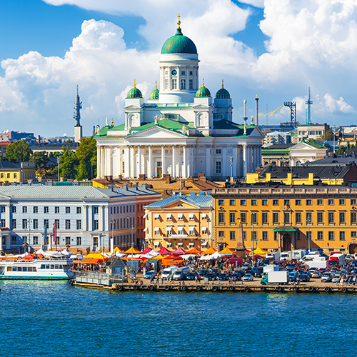 Départ pour une visite d’une demi-journée de la capitale finlandaise incluant Senaatintori, le magnifique ensemble architectural de la place du Sénat. Une œuvre d’art de style empire. Nous continuerons vers le Kauppatori, pittoresque place du marché, en bordure du port, caractérisée par une abondance de fleurs, fruits et marchands affairés. Helsinki est très riche architecturalement, avec notamment la cathédrale de Tuomio kirkko construite au 19e siècle, dotée d’une imposante coupole en cuivre. Enfin, nous passerons devant la cathédrale orthodoxe Uspenski de style néo-byzantin qui dresse sa puissante masse de briques rouges dans l’île Katajanokka. Par la suite, visite de l’église de Temppeliaukio, conçue par les architectes Timo et Tuomo Suomalainen, qui a la particularité d’être creusée dans la roche naturelle avec un dôme laissant entrer la lumière. Achevée en 1969, elle est aujourd’hui une des attractions principales de la ville.