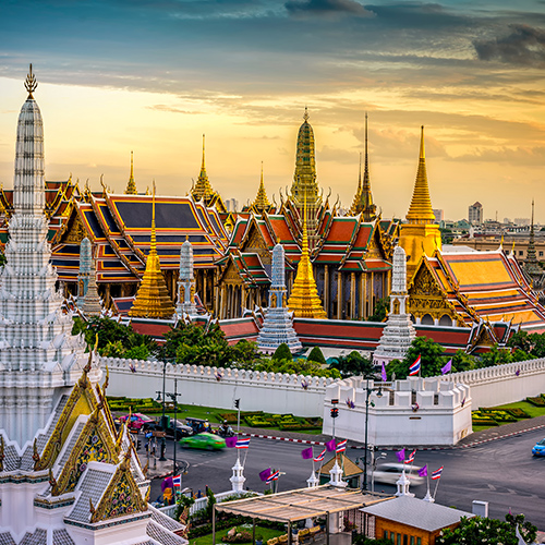 Bangkok est une mégapole hyperactive et un monstre urbain avec plus de 12 millions d’habitants. Nous débuterons la journée de découvertes par la visite de l’un des principaux temples de la ville et du plus grand monastère de Thaïlande, le Wat Pho, dans lequel se trouve le Bouddha couché. Nous profiterons d’une balade en tuk-tuk. En après-midi, nous effectuerons la visite du palais royal. Fondée en 1782 par le Roi Rama 1er, sa muraille protège une enceinte de 259 hectares. Souper. Nous y découvrirons le temple du Bouddha d’émeraude, qui est en fait la chapelle royale du Grand Palais. Le Bouddha d’émeraude qui se trouve à l’intérieur ne mesure que 60 cm, mais c’est la statue la plus célèbre et la plus vénérée de Thaïlande. Retour tardif au navire.