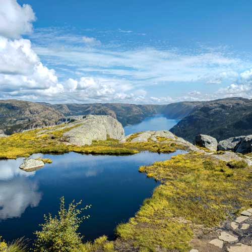 C’est le point d’entrée du Lysefjord, l’un des plus spectaculaires fjords du pays, long de 42 kilomètres et bordé de parois rocheuses hautes de 1 000 mètres qui se jettent à la verticale dans les eaux. La région en compte beaucoup d’autres, aussi magnifiques les uns que les autres. Vous pourriez partir à la découverte de Stavanger. Elle possède quelques musées originaux tels les musées du pétrole et de la conserve, avant de vous aventurer dans le vieux Stavanger, labyrinthe de petites rues et de charmantes maisons blanches en bois.