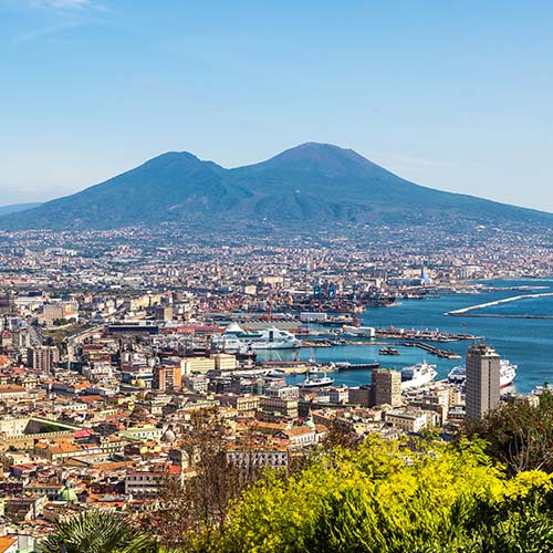 La romantique capitale du sud de l’Italie est nichée au bord d’une magnifique baie où l’on aperçoit les îles d’Ischia et de Capri. La silhouette majestueuse du Vésuve domine l’horizon. De nombreux trésors historiques et des sites de toute beauté sont situés à proximité : Pompéi, Herculanum, Sorrento et la côte amalfitaine.