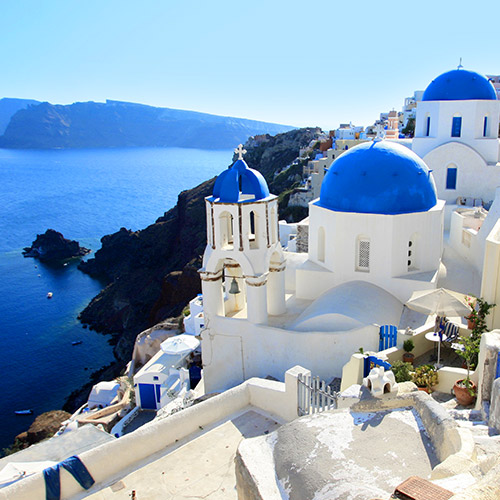 Elle est considérée comme la plus romantique des îles grecques. Vous arriverez au port d’Athinios et vous débarquerez par bateau pour visiter Oia, village typique de Santorin : un dédale de ruelles pavées de marbre et de petites maisons couleur ocre aux toits bleus à coupole sont des signes distinctifs que l’on peut apercevoir dans toute l’île.