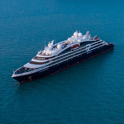 Le Dumont d'Urville incarne cette nouvelle génération de bateaux de croisière à taille humaine. Réparties du pont 3 au pont 5, les 92 cabines et suites de ce navire incarnent une atmosphère unique, chère à PONANT EXPLORATIONS : une subtile alliance de luxe, d’intimité et de bien-être. Profitez de la vue mer de chaque cabine dans un cadre propice à l’évasion. Le Dumont d'Urville dispose de nombreux espaces pensés et aménagés afin de préserver l’intimité de chaque passager. Dans une atmosphère cosy et raffinée, ces lieux de vie offrent des moments de détente et de convivialité adaptés à toutes les envies. Composante essentielle de la culture française, la gastronomie tient tout naturellement une place de choix à bord de ce méga yacht. Inauguré en 2019 — Capacité : 184 passagers