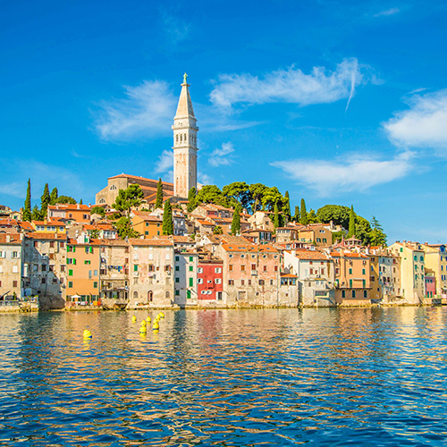 Départ en autocar à travers les paysages verdoyants de l’Istrie, en direction de Poreč. Nous visiterons la vieille ville et le complexe épiscopal de la basilique euphrasienne, inscrit au patrimoine mondial de l’UNESCO, avec sa basilique, son atrium, son baptistère et son palais épiscopal, témoins des influences classiques et byzantines. Dîner. Temps libre pour flâner dans les rues de Poreč avant de rejoindre Rovinj, ancienne île au riche héritage vénitien. Nous découvrirons ses ruelles étroites, ses arcades décorées et ses maisons colorées typiques, puis la basilique Sainte-Euphémie, emblème de la ville, avec son clocher de 63 mètres, ses reliques et ses œuvres d’art sacrées.
