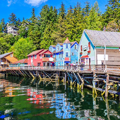 La ville se déploie le long d’un chenal, vous pourrez visiter le parc des totems et les ruelles de Creek Street, l’ancien quartier chaud où régnaient naguère les trafiquants d’alcool et qui a gardé un caractère très typique.