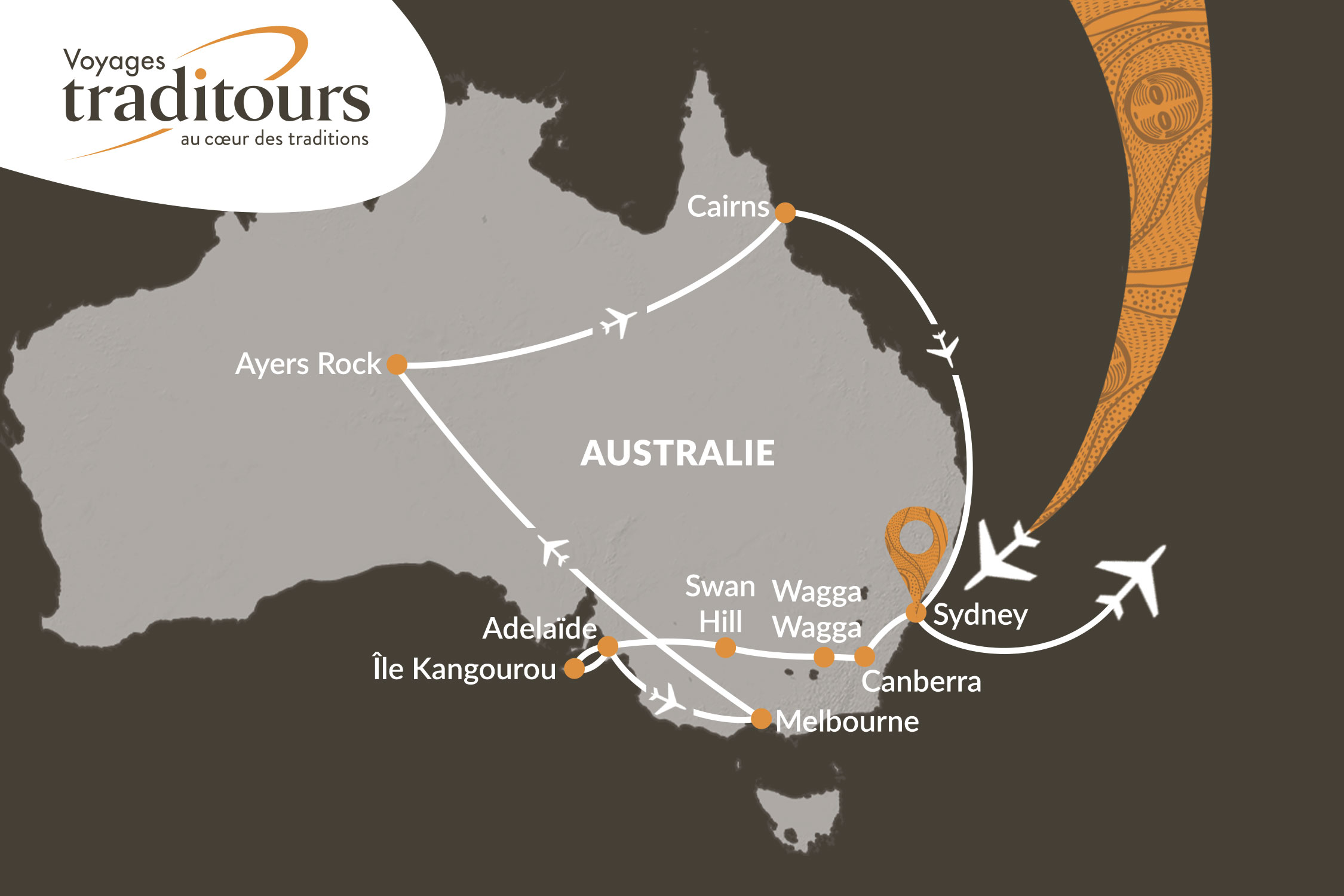 Rencontre avec notre accompagnateur de l’équipe Traditours à l’aéroport de Montréal. Assistance aux formalités d’enregistrement et envol pour Sydney, situé en Australie. Repas et nuits dans l’avion.