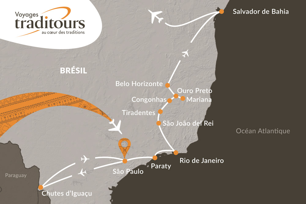 - Les 3 vols intérieurs : São Paulo / Iguaçu, Iguaçu / São Paulo et Belo Horizonte / Salvador de Bahia