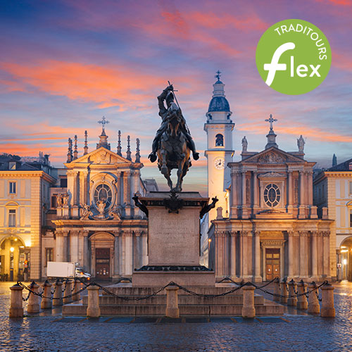 Déjeuner. La journée débutera par une visite guidée de la ville qui nous permettra de découvrir l’élégance de la première capitale de l’Italie unifiée. Turin saura nous enchanter avec ses places grandioses, ses nombreuses arcades totalisant 18 km de promenades abritées et le classicisme de son architecture. Nous admirerons le palais royal, le palais Madame et son imposante façade, le palais Carignan, la cathédrale Saint-Jean-Baptiste abritant le précieux Saint-Suaire, la place San Carlo et l’impressionnante place Vittorio Veneto, l’une des plus grandes d’Europe, sans oublier la Mole Antonelliana, symbole incontesté de la ville. Dîner d’une spécialité piémontaise. Comme dessert, nous dégusterons le fameux bicerin, boisson typiquement turinoise préparée à partir de café espresso, de chocolat chaud et de lait ou de crème. Un véritable délice! Nous bénéficierons d’un après-midi libre pour nous permettre d’explorer les lieux à notre rythme. Que l’on visite les prodigieuses églises baroques de la ville, le somptueux palais royal et son impressionnante armurerie, son fabuleux musée des antiquités égyptiennes abritant plus de 10 000 œuvres ou que nous décidions simplement de flâner dans ses cafés historiques, Turin saura assurément nous charmer. Souper et soirée libres. Nuit à Turin.