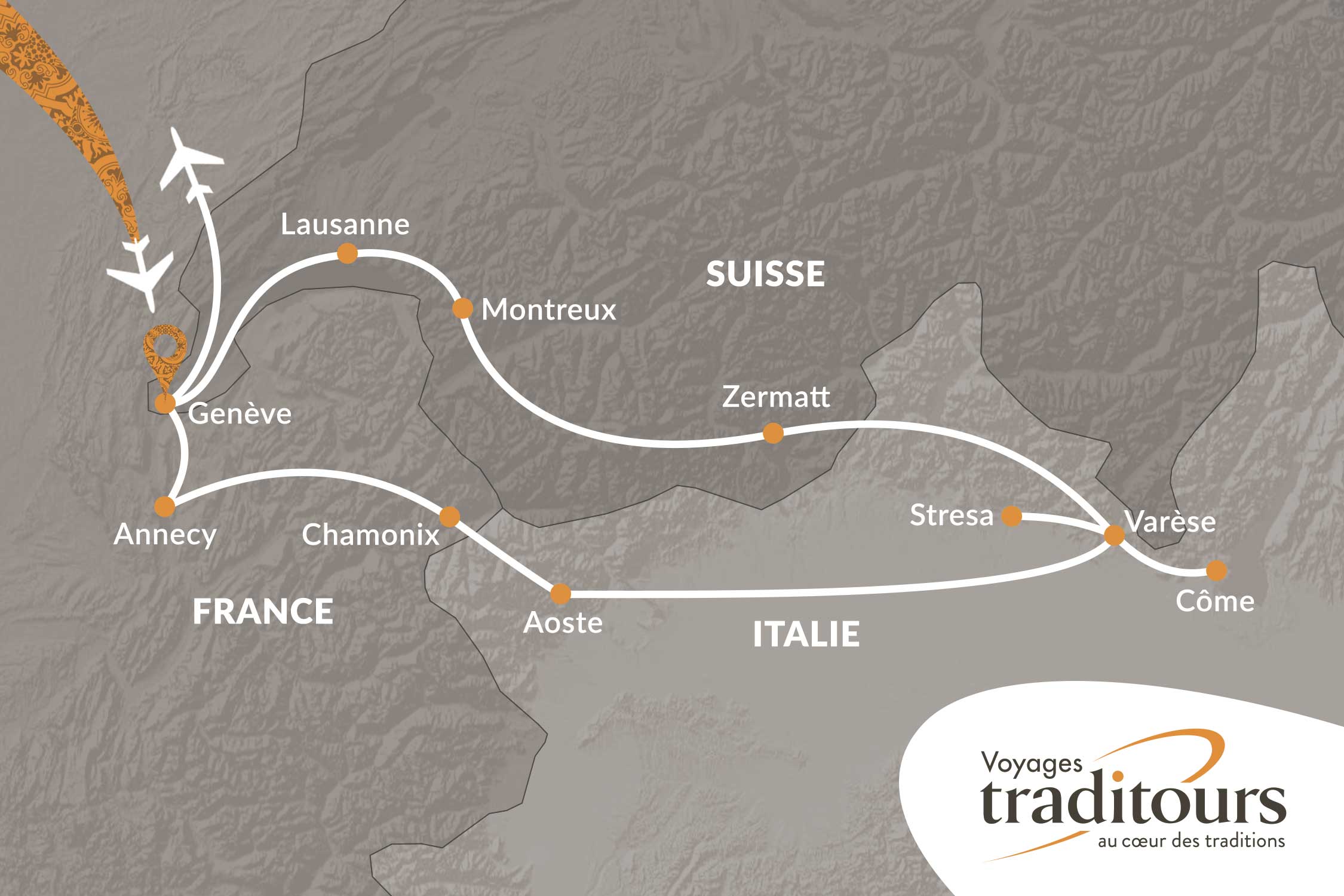 Rencontre à l’aéroport de Montréal avec notre accompagnateur de l’équipe Traditours et envol à destination de Genève, en Suisse. Repas et nuit à bord.