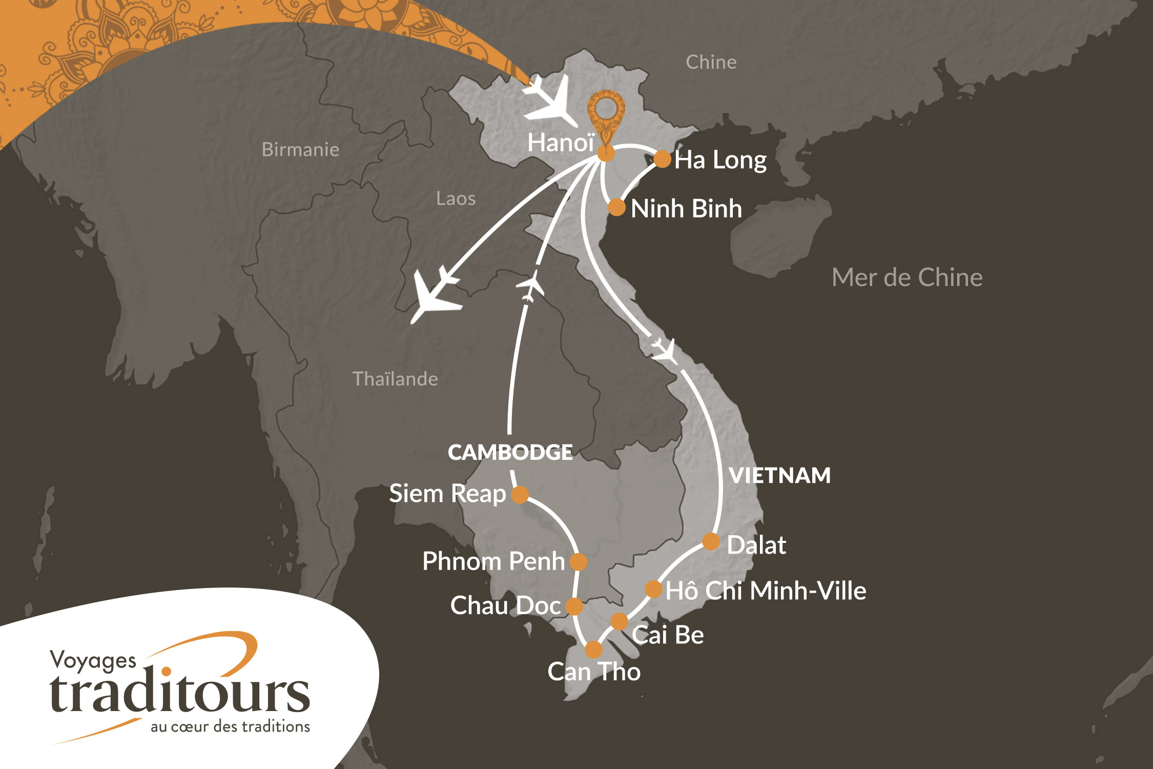 - Les 2 vols intérieurs : Hanoï / Dalat & Phnom Penh / Siem Reap